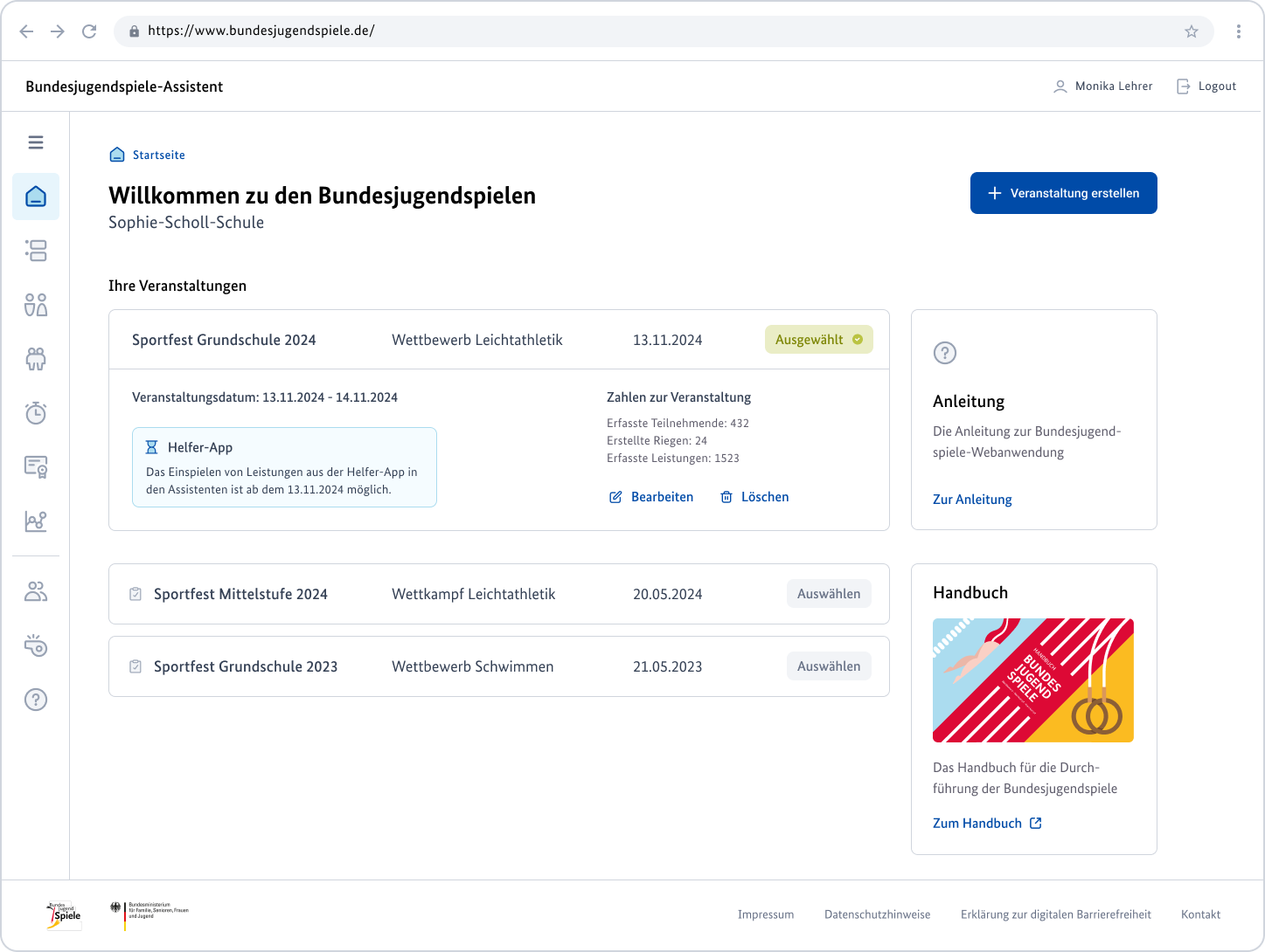 A digital platform for planning, recording and evaluating school sports competitions that supports teachers and helpers with structured workflows across desktop and mobile devices.