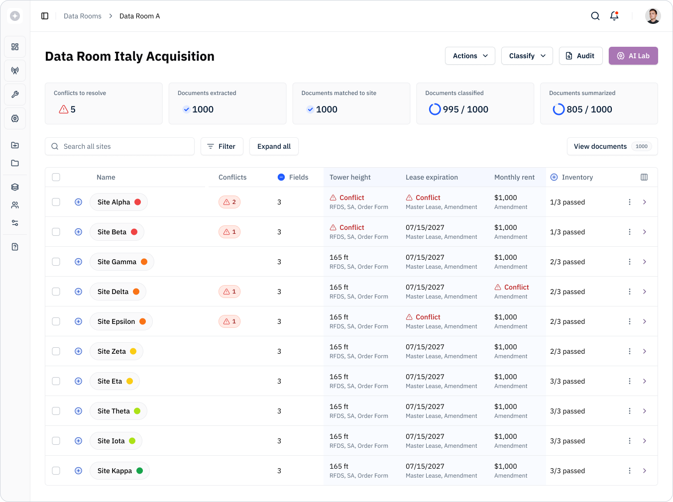 A unified execution and asset platform for telecom infrastructure that connects CAD files, operational data and workflows to manage towers, tenants and compliance across the full asset lifecycle.